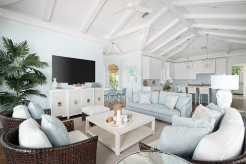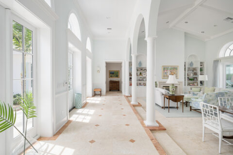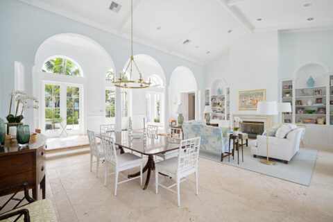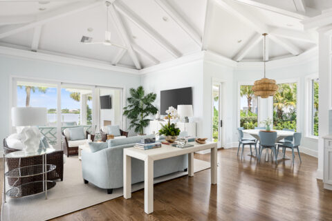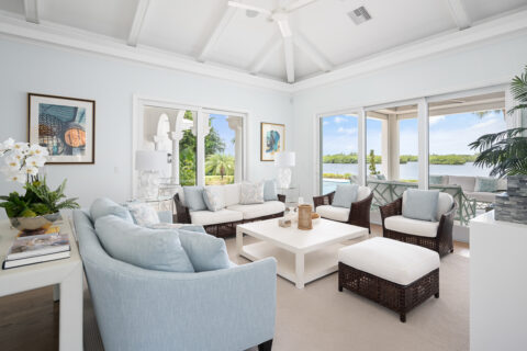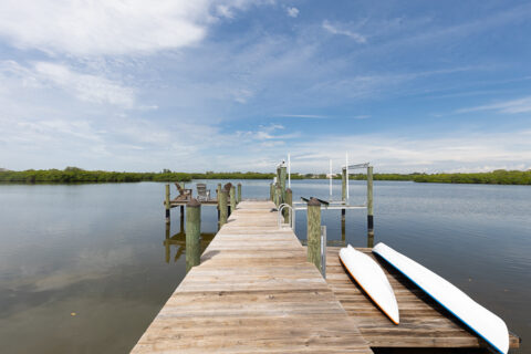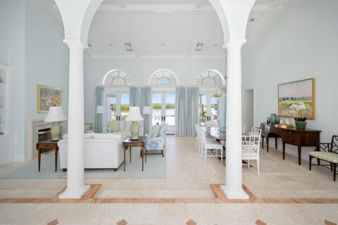 Set along the tranquil John’s Island Sound in the heart of the community, this sumptuously renovated 5BR/6.5BA home capitalizes on unparalleled waterfront vistas, sunlit interiors and ideal indoor/outdoor living that is well-suited for entertaining and relaxing alike. A delightful choice for families, this exceptional retreat hosts a separate guest cabana with updated bathroom, desirable bunkroom and kitchen efficiency area. Bright and inviting, the gracious 6,696± GSF interior beckons, where a gorgeous living room is framed by a fireplace and custom built-ins, and centers around direct views of the Sound and pool. A covered loggia serves as a picturesque setting to enjoy the outdoors, and sits adjacent to a newly fashioned sitting area with screens and outdoor fireplace. The new pool and deck leads out to a completely updated dock with boat lift, kayak storage and seating. Serenity awaits as you sit and unwind as dolphin frolic in the water beyond. Back inside, the well-appointed island kitchen overlooks a bright family room and breakfast nook where cool coastal hues craft a serene vibe. Additionally, the property enjoys several en suite guest rooms, a pocket office with built-in desk and storage, a spacious master wing with lovely bathroom. Updated by Rob Atkins and brought to life by Croom Construction, the retreat features custom millwork and elegant detailing that evokes relaxed sophistication.