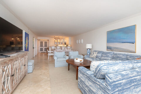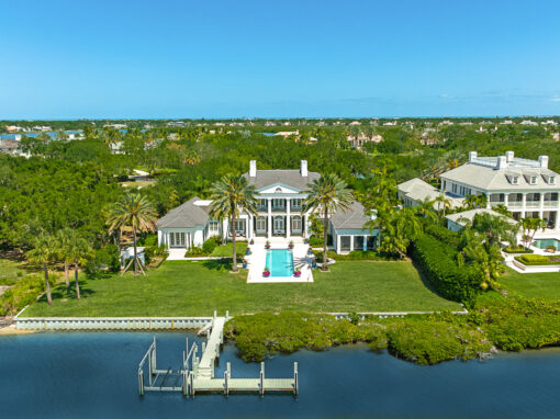 Poised along a serene cove that leads to the Intracoastal, this stately 3BR+Library enjoys an ample.81 acres of lushly landscaped grounds that overlooks the sparkling water. Boasting 6,191± GSF, the retreat takes advantage of a private backdrop, and plays host to a pool, dock, and ideal outdoor living via a spacious poolside terrace and covered loggia. Inside, a gracious living/dining room combination with fireplace, is adjoined by a wet bar, bright island kitchen and delightful family room with vaulted ceilings and warm ambient light. Other enviable features of this home include a library with custom built-ins and fireplace, 2 ensuite guest rooms, and a master suite with water views. Additionally, this sprawling waterfront home has a 3-car garage, new roof (2017), room to add on the expansive lot, and an attractive tree-lined and sun-dappled driveway – a home where tranquility and private appeal combine.