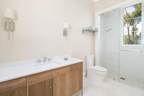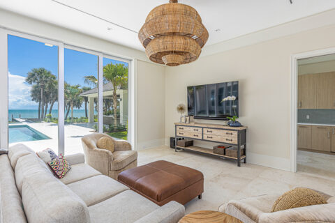 Sea vistas take centerstage in this 5BR+Office beachfront jewel, where principal rooms are strategically positioned to take advantage of the views, ensuring that one will never miss a moment of the breathtaking scenery. The outdoor spaces unite harmoniously with interiors, allowing for exceptional entertaining or simply enjoying balmy tropical breezes on a relaxed weekend. Combining modern flair with quiet comfort, the two-level marvel was skillfully crafted by Croom Construction and thoughtfully designed by Hoos Architecture to create a distinguished and automated home that marries form and function seamlessly.